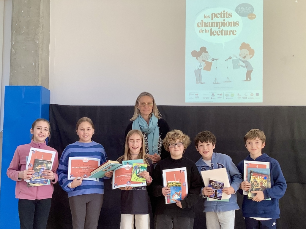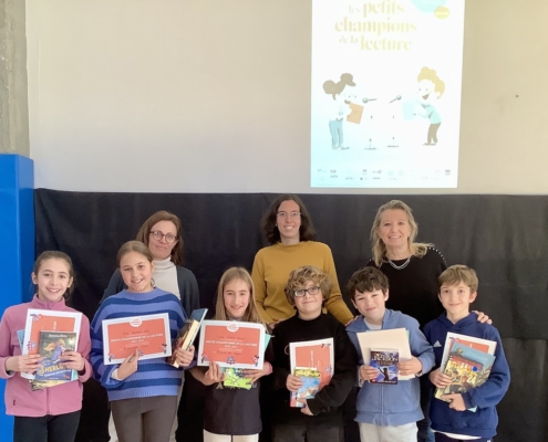 Cette semaine a eu lieu la finale école des « Petits champions de la lecture », championnat de lecture à voix haute. Nous félicitons nos deux champions, Ioana et Romain !